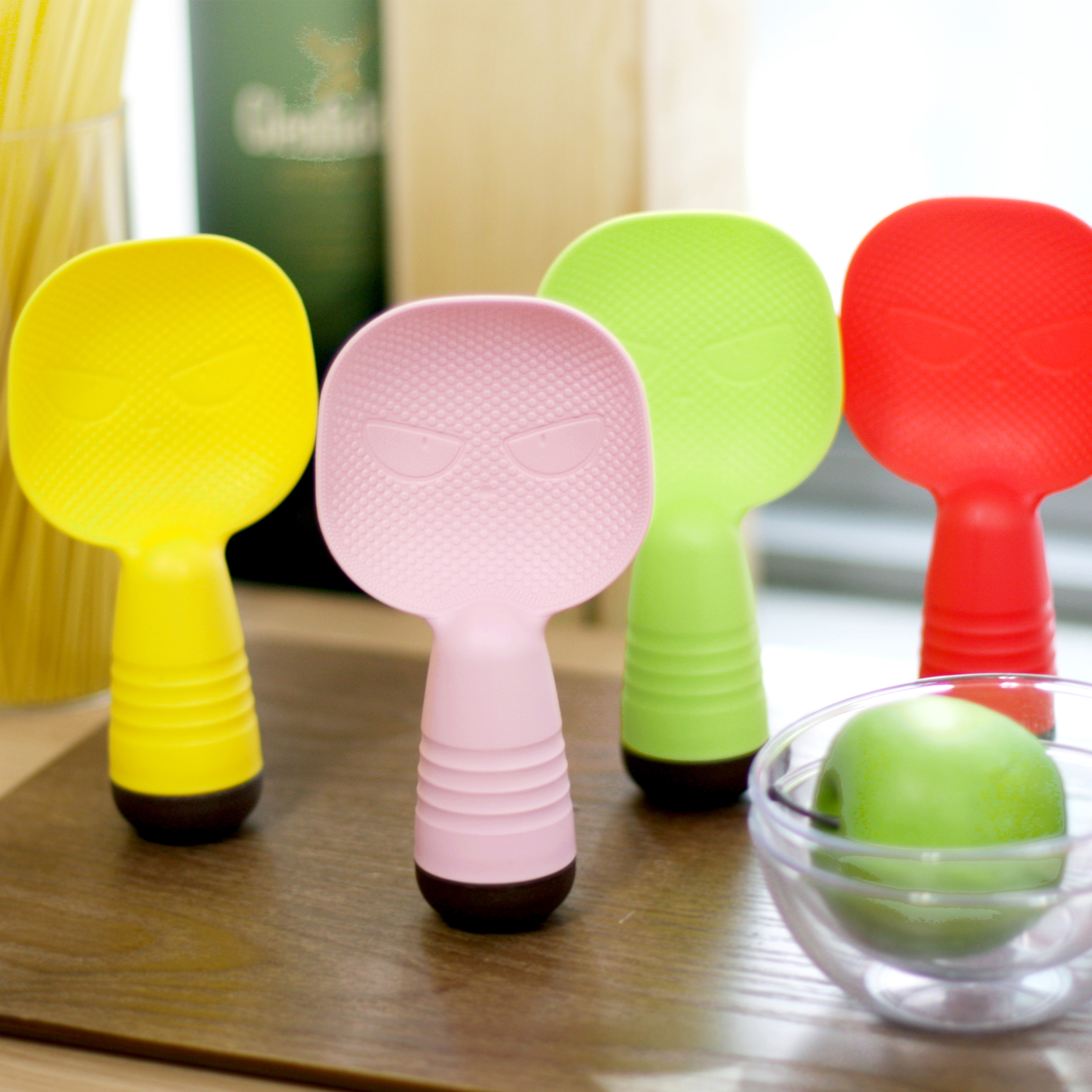 With its adhesion plate on the scoop, it can stand by itself. So, you may use it comfortably and hygienically.